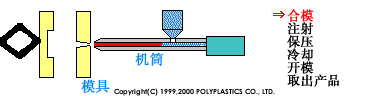 1、合模 2、射出 3、保壓 4、冷卻 5、開模 6、取出產(chǎn)品
